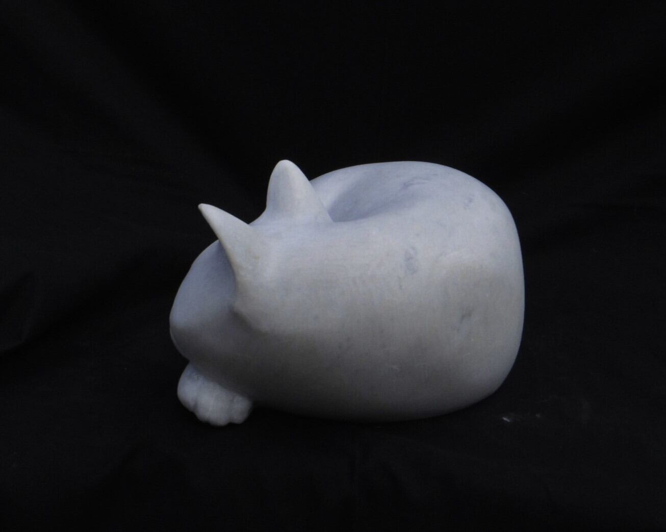 「ねむる」は初めて飼った猫がねむっている姿を作った作品です。毛色は茶トラだったので白くはなかったのですが・・・