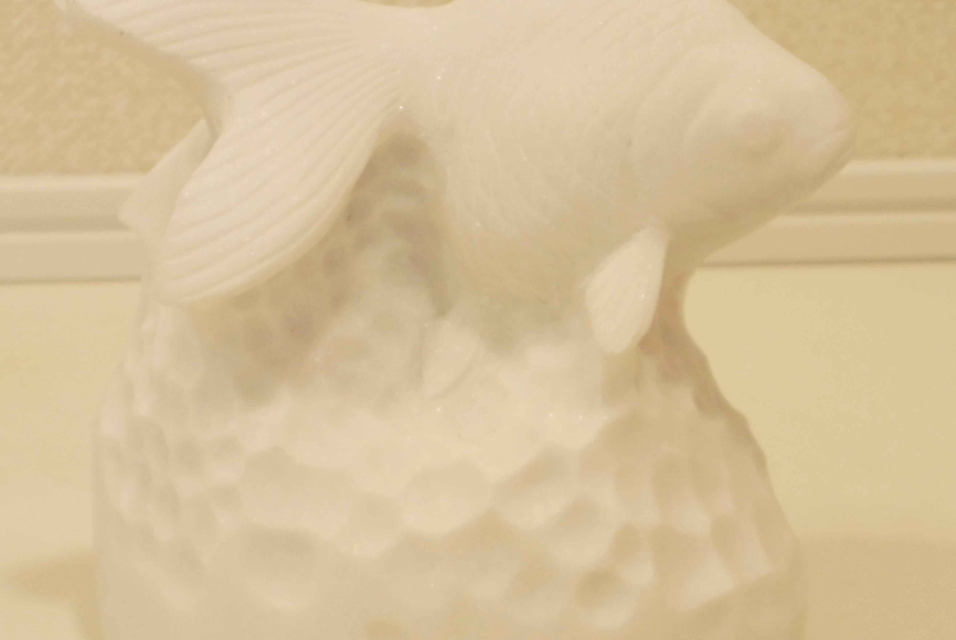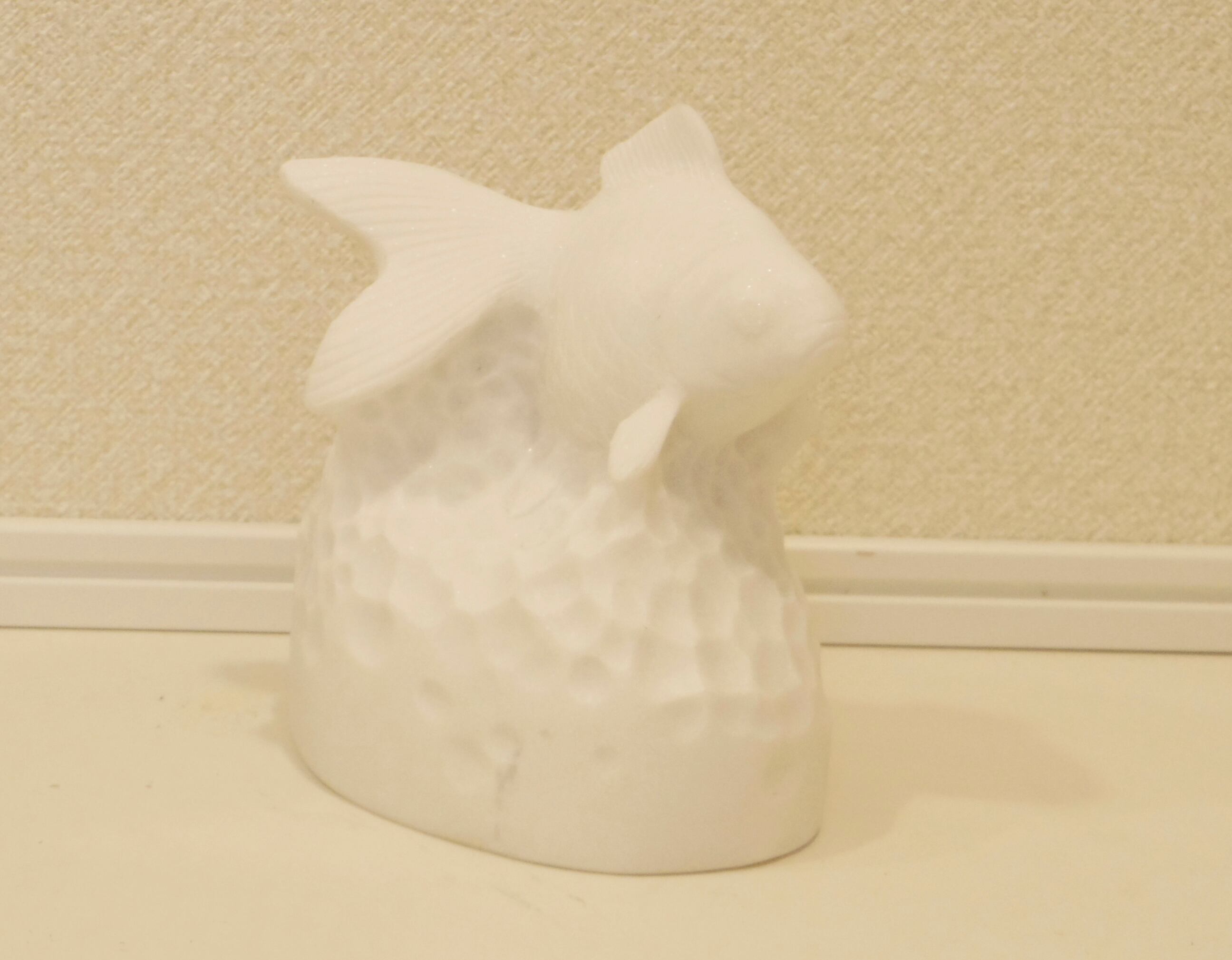 白色に輝く大理石で作られた金魚が、あなたのお部屋に彩りを加えます。水の中で優雅に舞う尾びれの揺れを、細かい手作業で丁寧に表現しました。金魚の載っている土台には、大小の丸い窪みを重ねることで、まるで本当の水中にいるかのような臨場感を演出しています。繊細なデザインと高品質な素材を使用したこの金魚は、インテリアアイテムとしてだけでなく、リラックスや癒しの効果もあります。日本の伝統的な彫刻技術を駆使した職人の技が光る一品です。金魚が持つ縁起の良さや水中の奇麗さを表したこの作品で、あなたの心にも癒しを与えてみませんか。